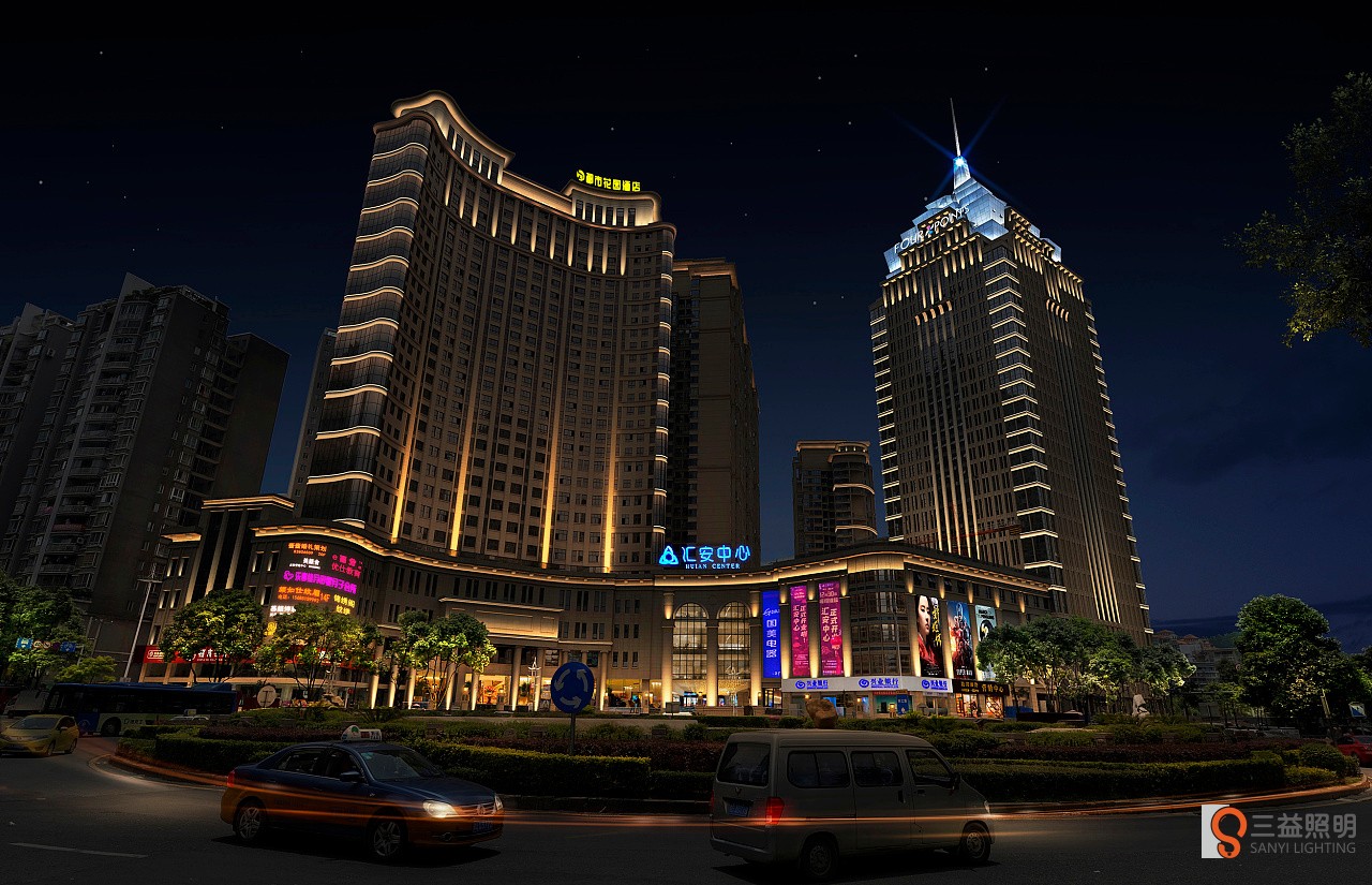 3. 燈光布局:燈光的布局要合理,不能過于擁擠或單調(diào)。可以通過不同的燈光布局方式,如橫向、縱向、聚散等,來突出酒店的外墻線條和建筑特色。同時,要注意燈光的均勻分布,避免產(chǎn)生視覺疲勞和不適感。